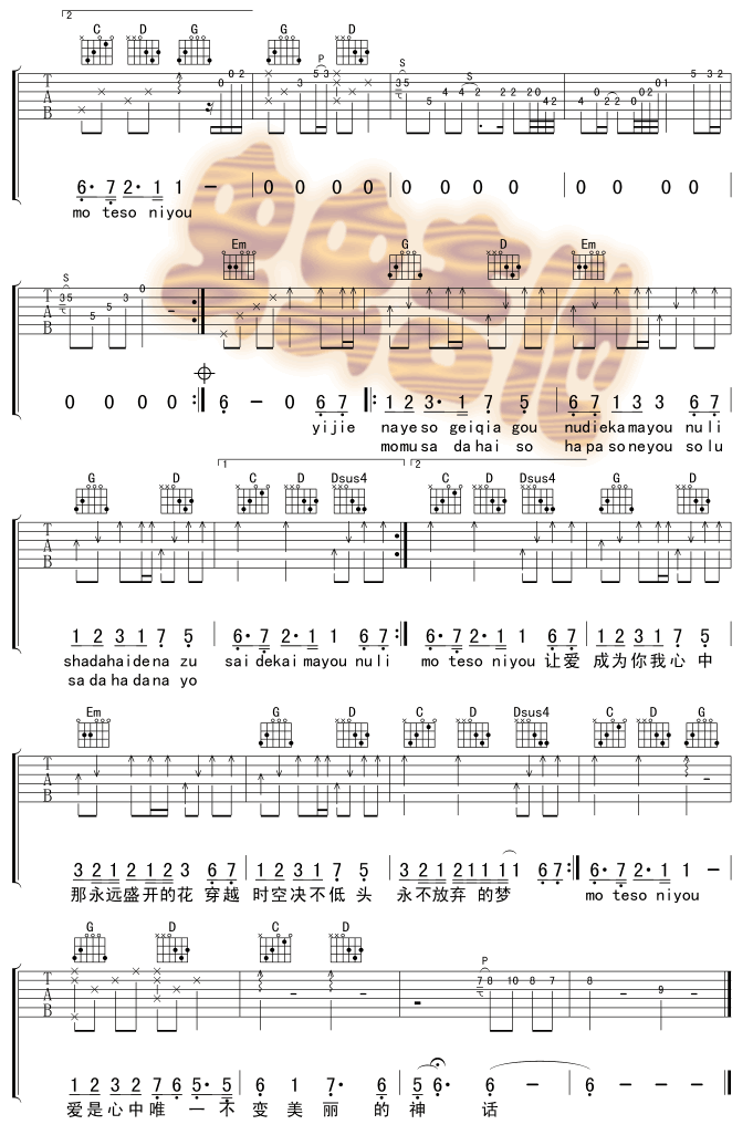 曲谱介绍: 无尽的爱|《神话》吉他弹唱谱,共有2张高清图谱,免翻页排版设计。