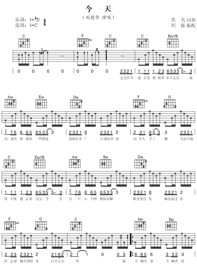 今天吉他谱 - 吉他弹唱谱