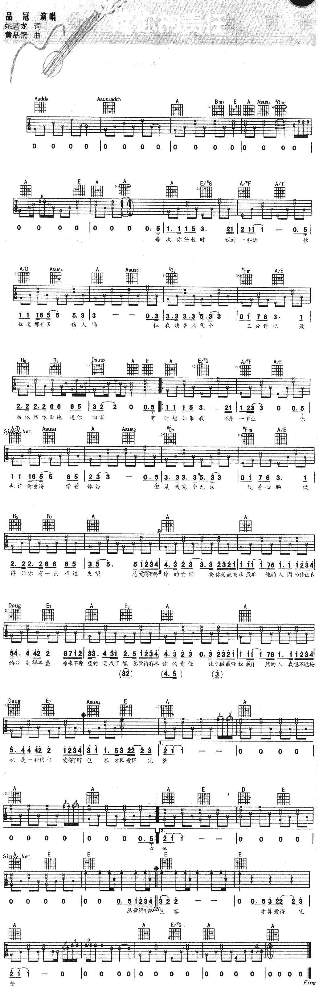 疼你的责任吉他谱 - 吉他弹唱谱