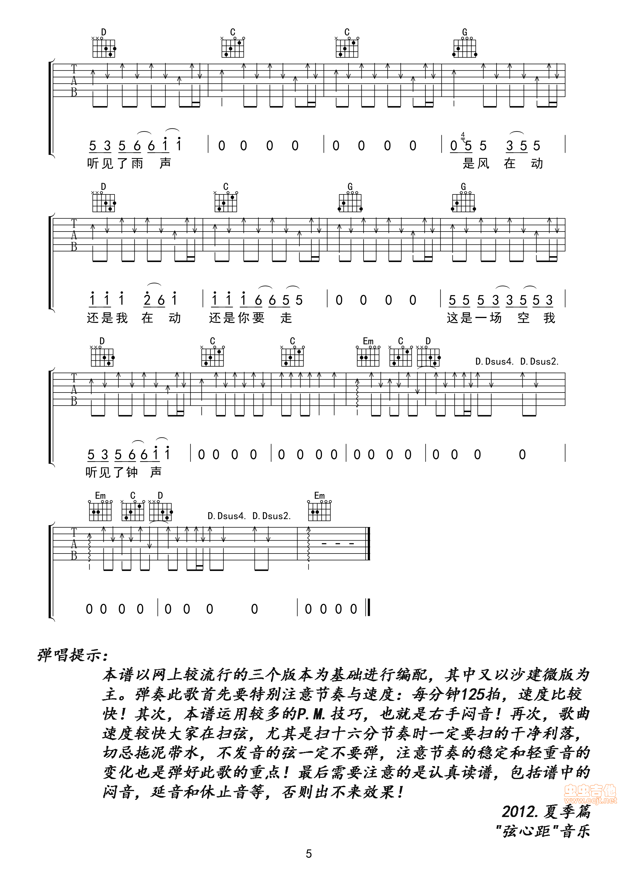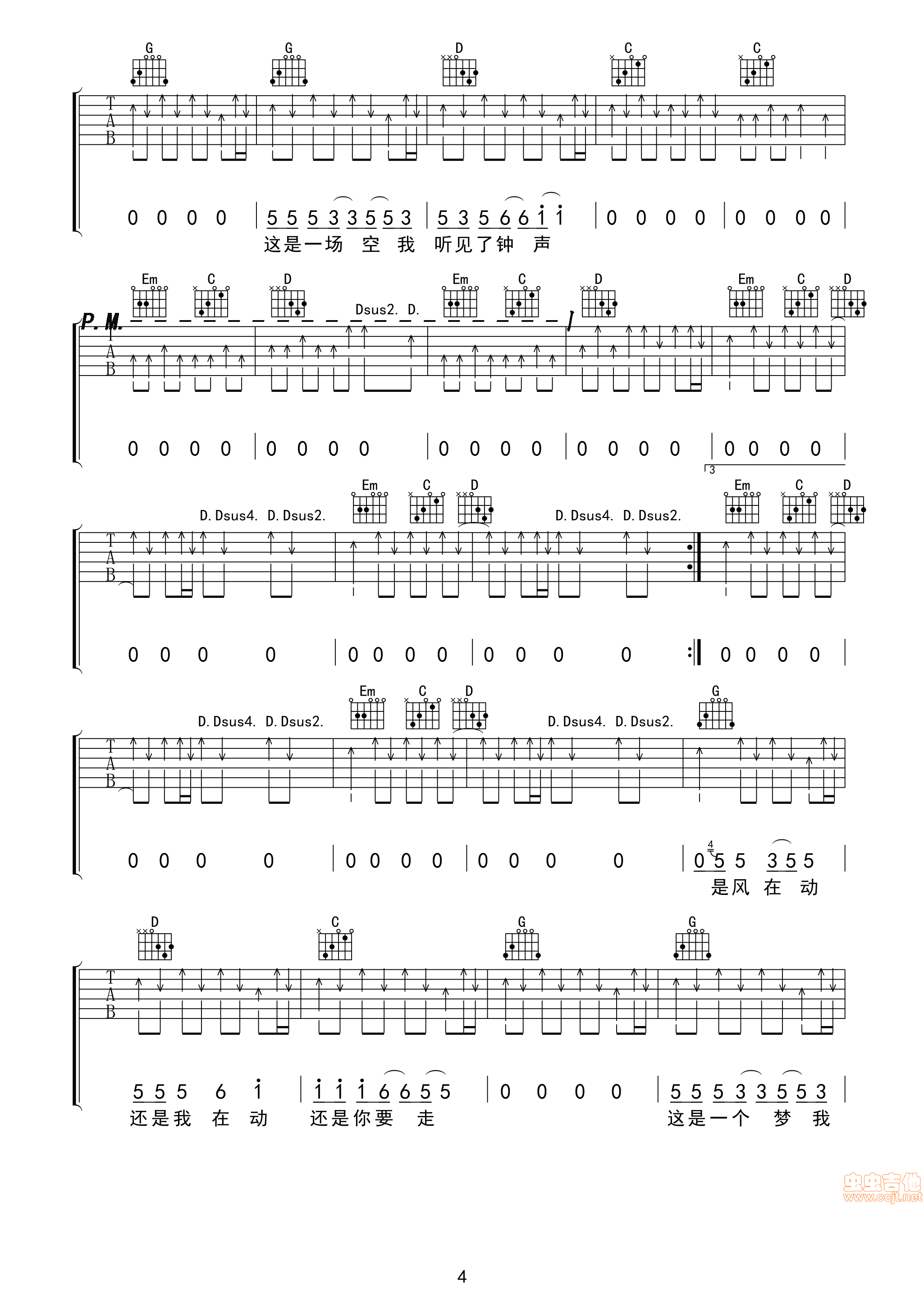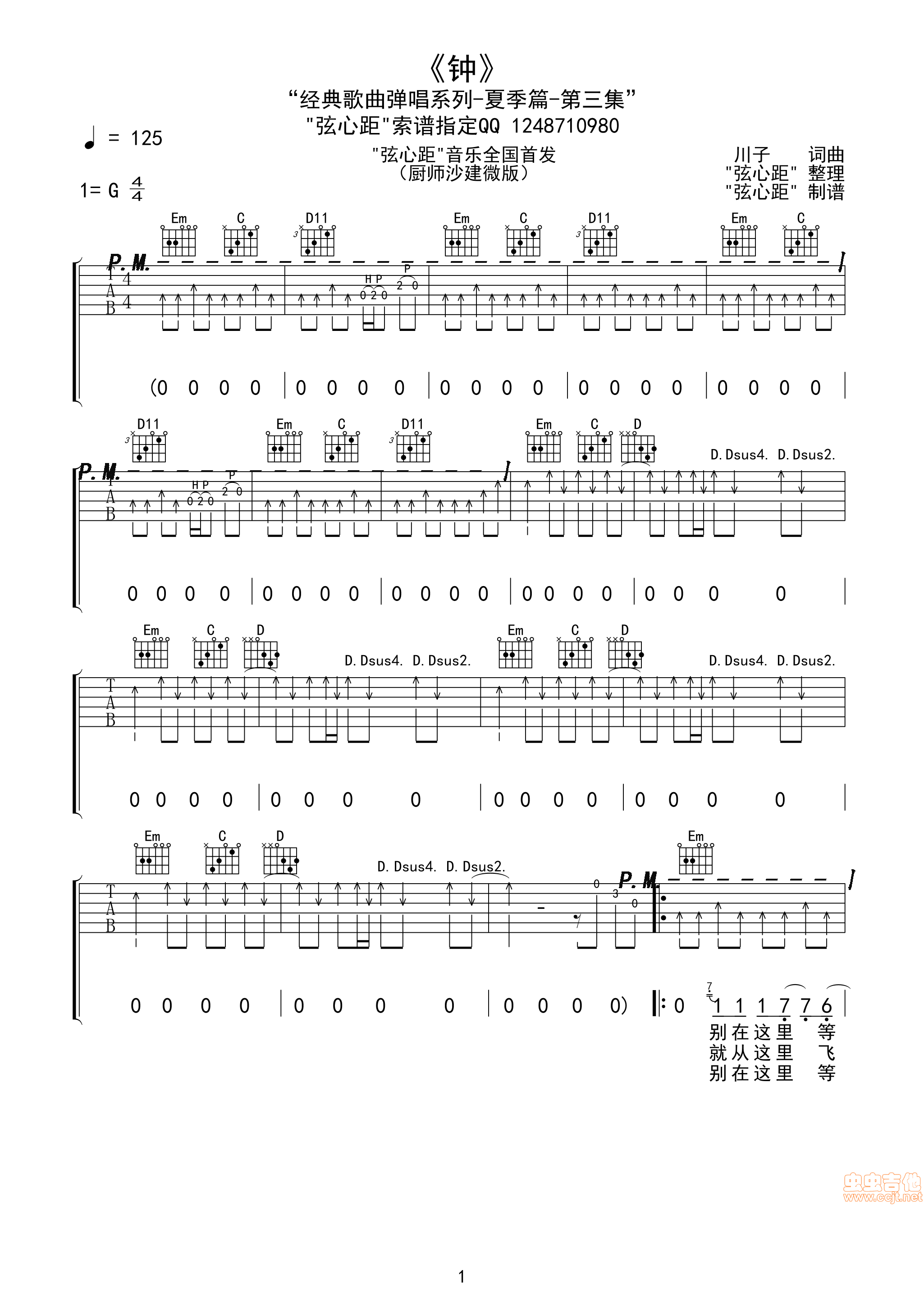 钟吉他谱 - 全网首发 - 吉他弹唱谱 - 原版