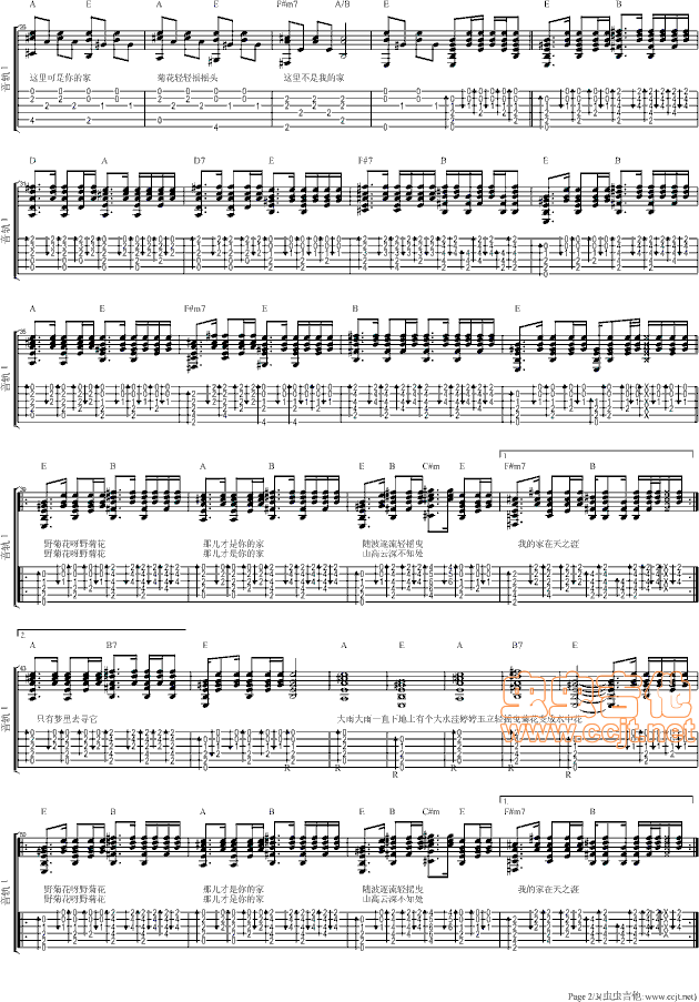 曲谱介绍: 《野菊花E调》吉他弹唱谱,采用E调指法编配,共有3张高清图谱。