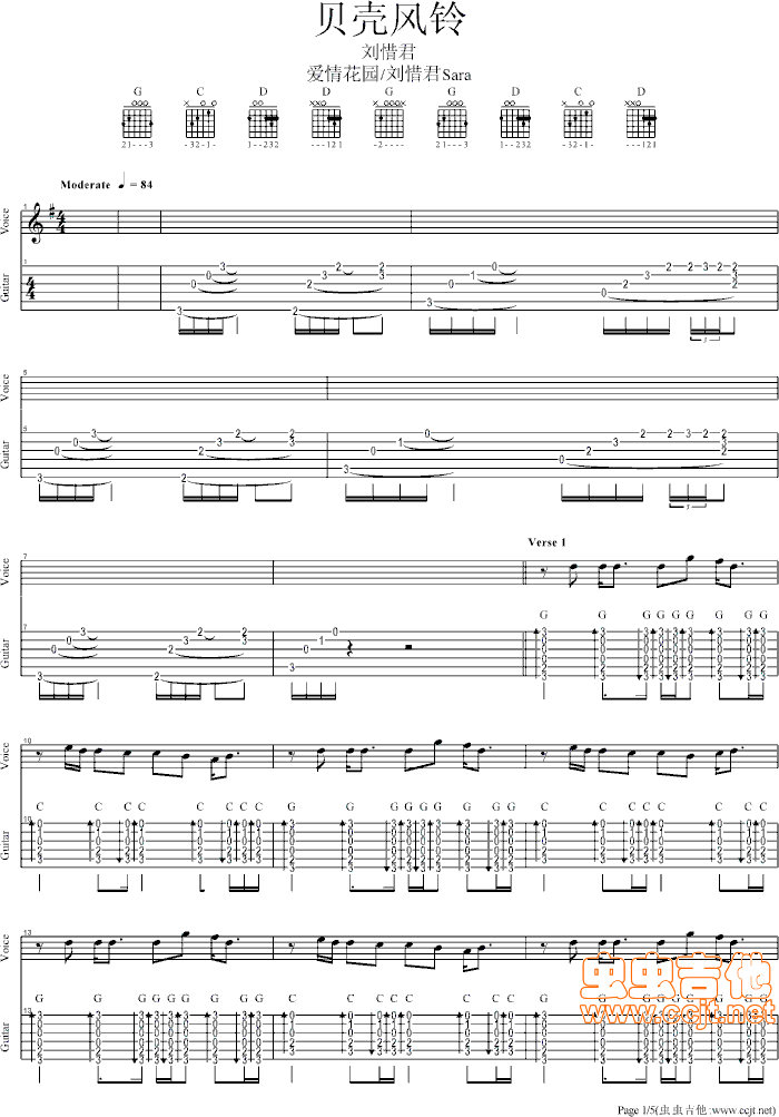 当前位置:琴谱网>吉他弹唱>贝壳风铃