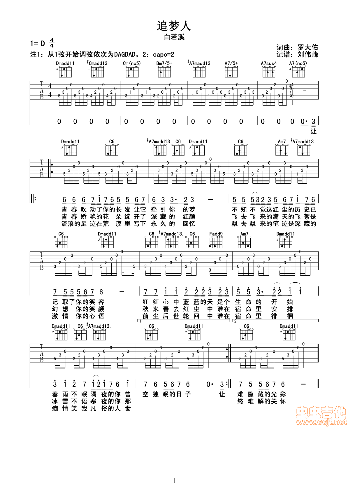 追梦人吉他谱 - 吉他弹唱谱