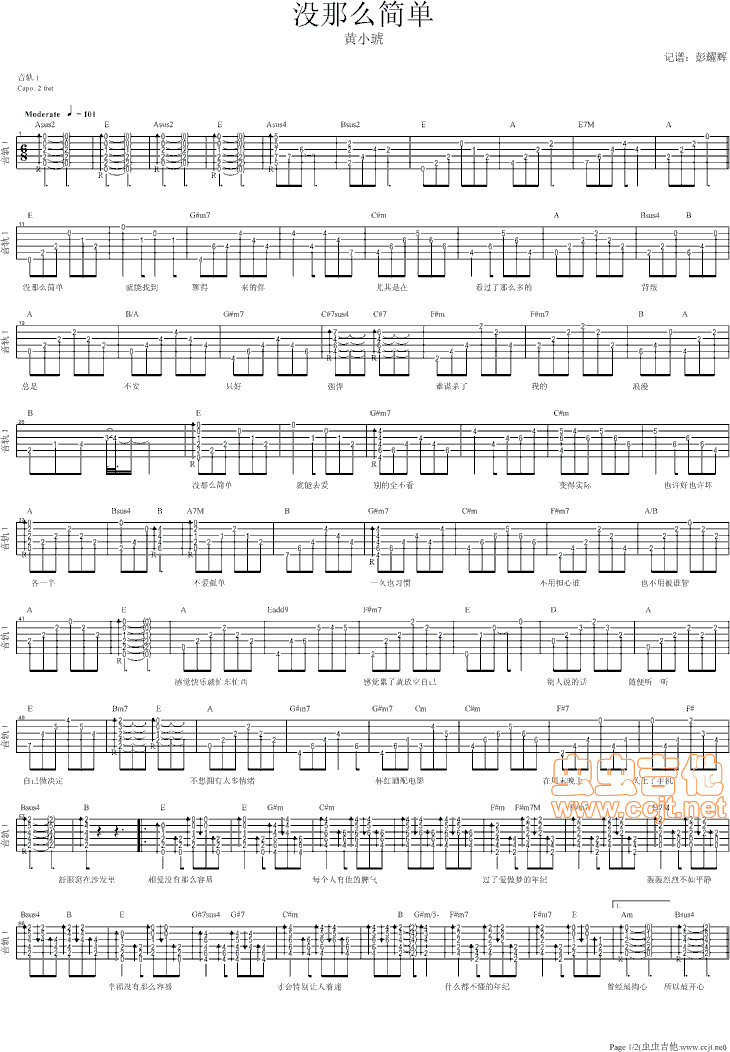 没那么简单E调吉他谱 - E调吉他弹唱谱
