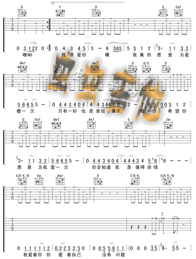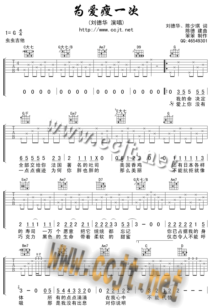 为爱瘦一次吉他谱 - 吉他弹唱谱