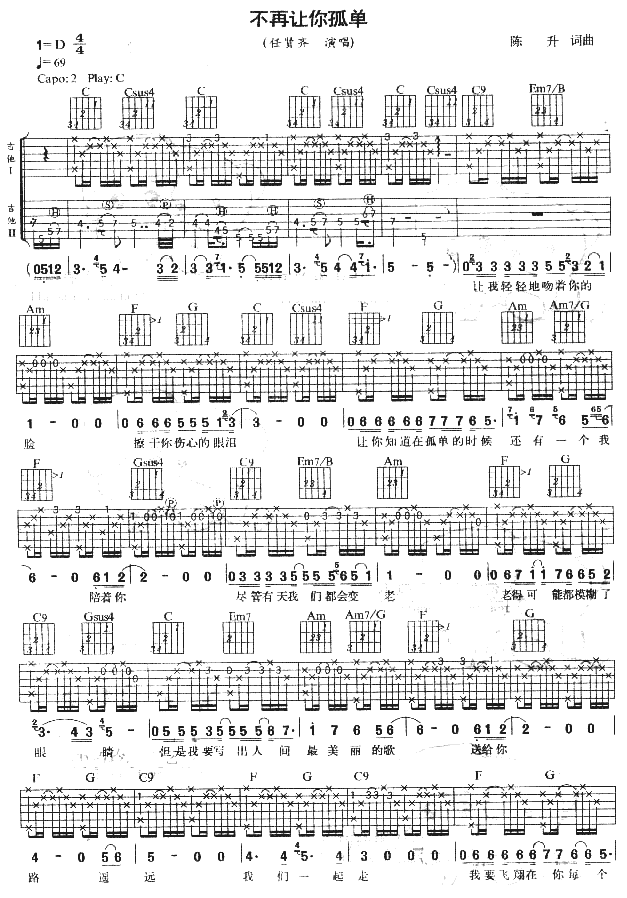 不再让你孤单吉他谱 - 吉他弹唱谱