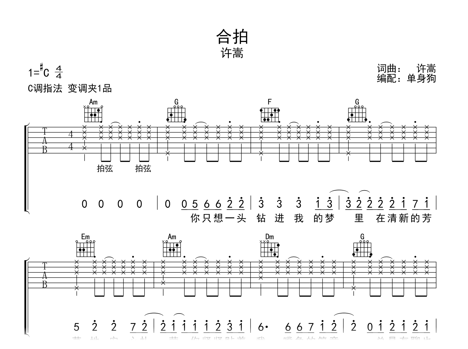合拍吉他谱 - 许嵩 - C调吉他弹唱谱