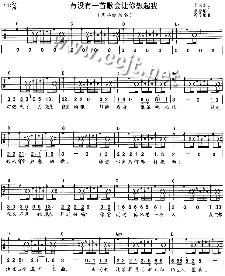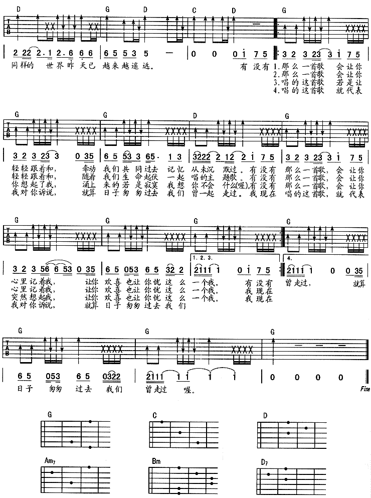 当前位置:琴谱网>吉他弹唱>有没有一首歌会让你想起我