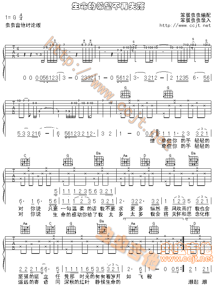 生命的希望不再失落吉他谱 - 吉他弹唱谱