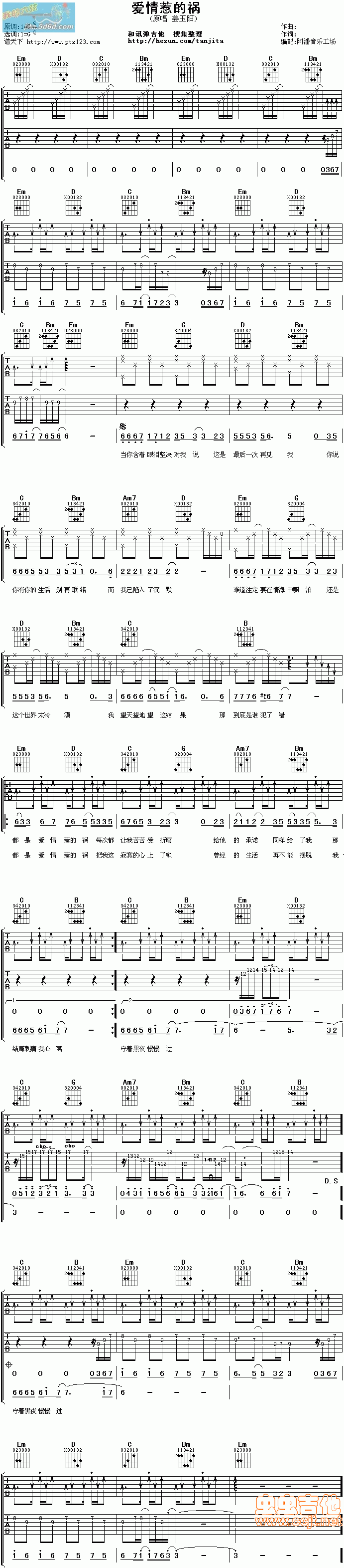 姜玉阳 爱情惹的祸吉他谱 - 姜玉阳 - 吉他弹唱谱