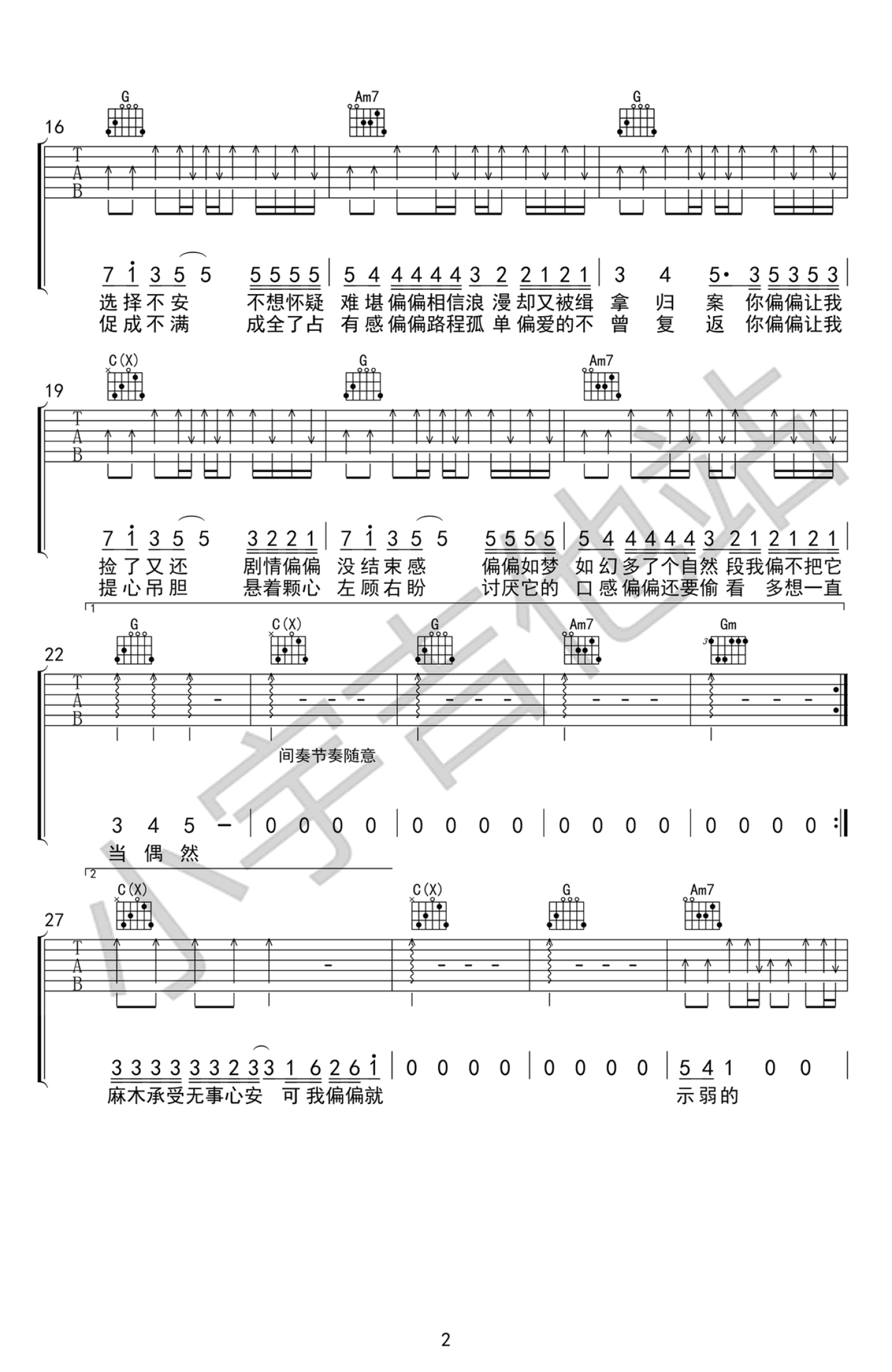 当前位置:琴谱网>吉他弹唱>偏偏