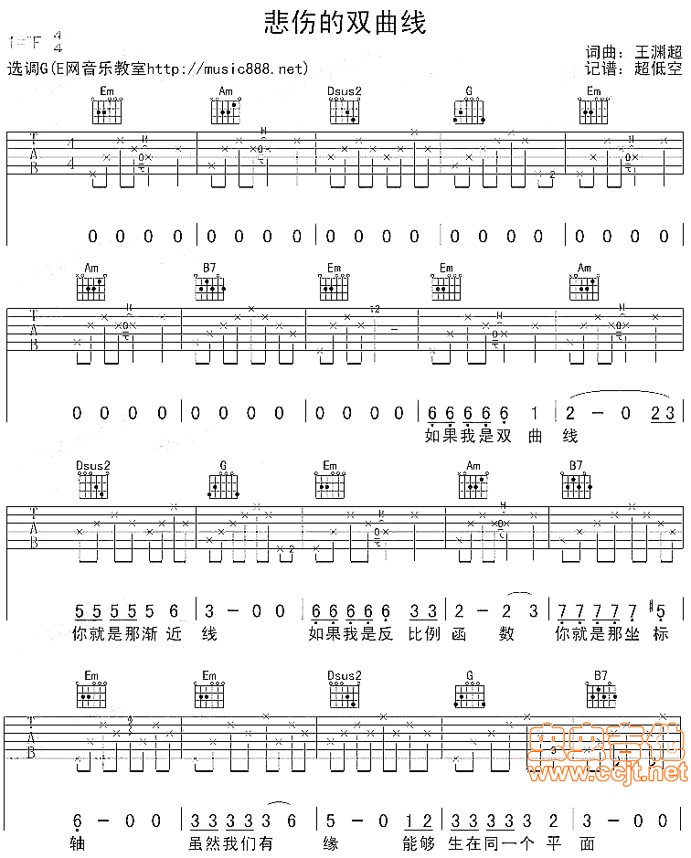 悲伤的双曲线(六线吉他谱 - 吉他弹唱谱