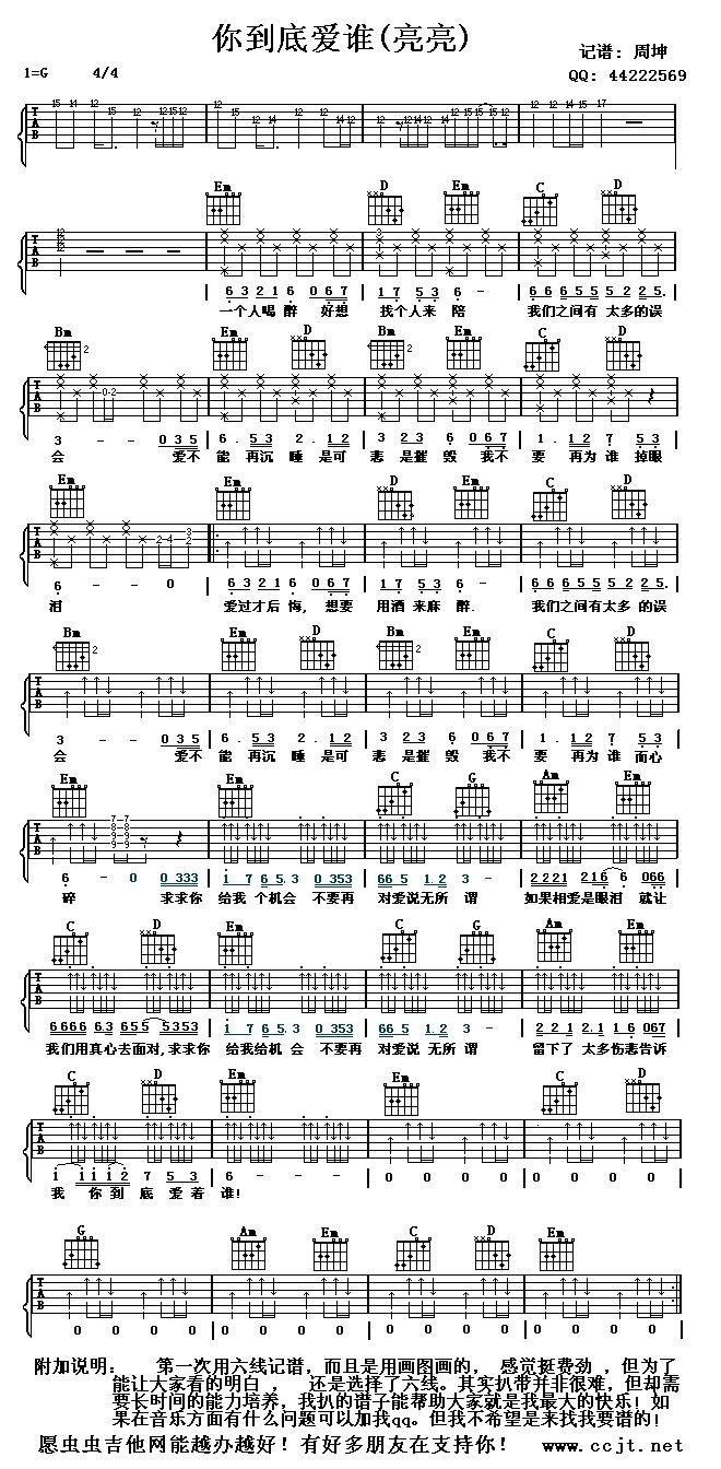 当前位置:琴谱网>吉他弹唱>你到底爱谁