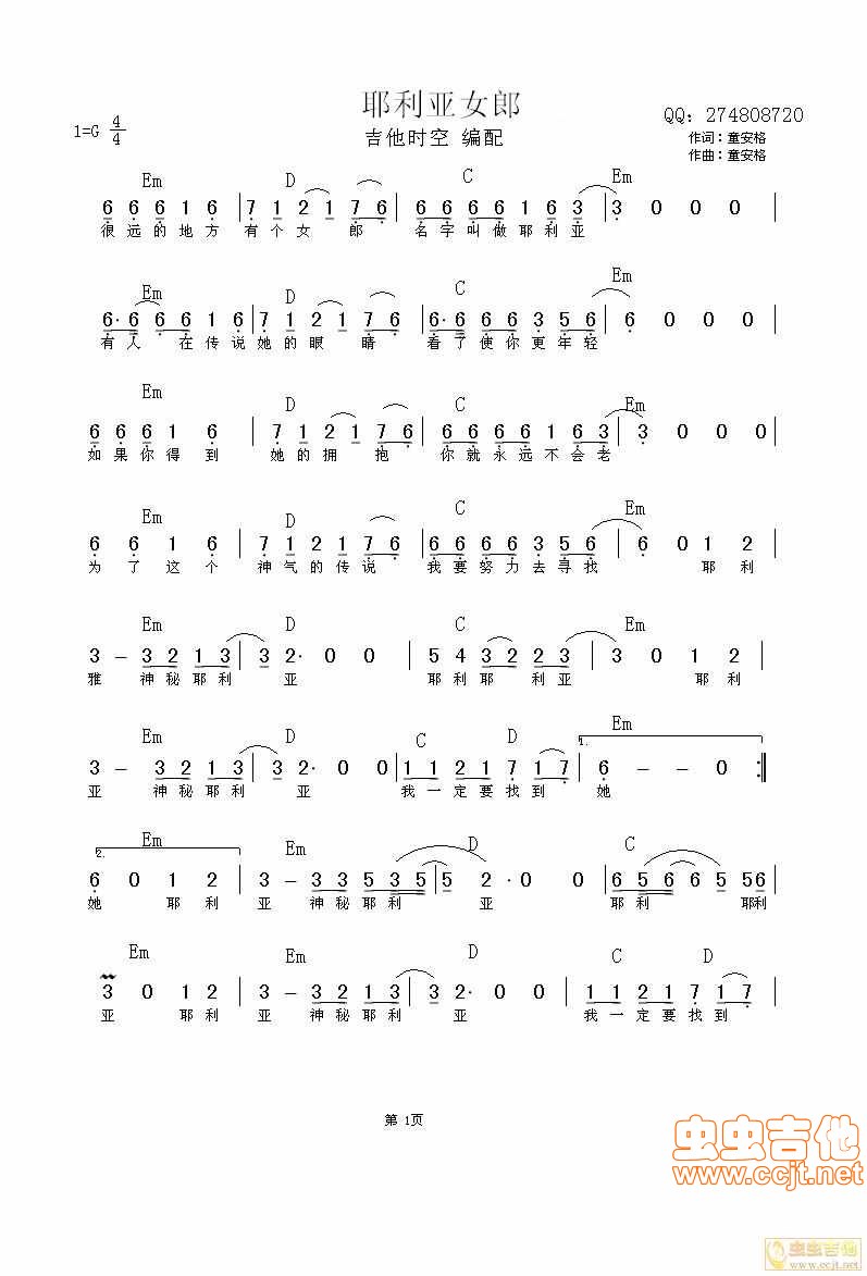耶里亚女郎吉他谱 - 吉他弹唱谱