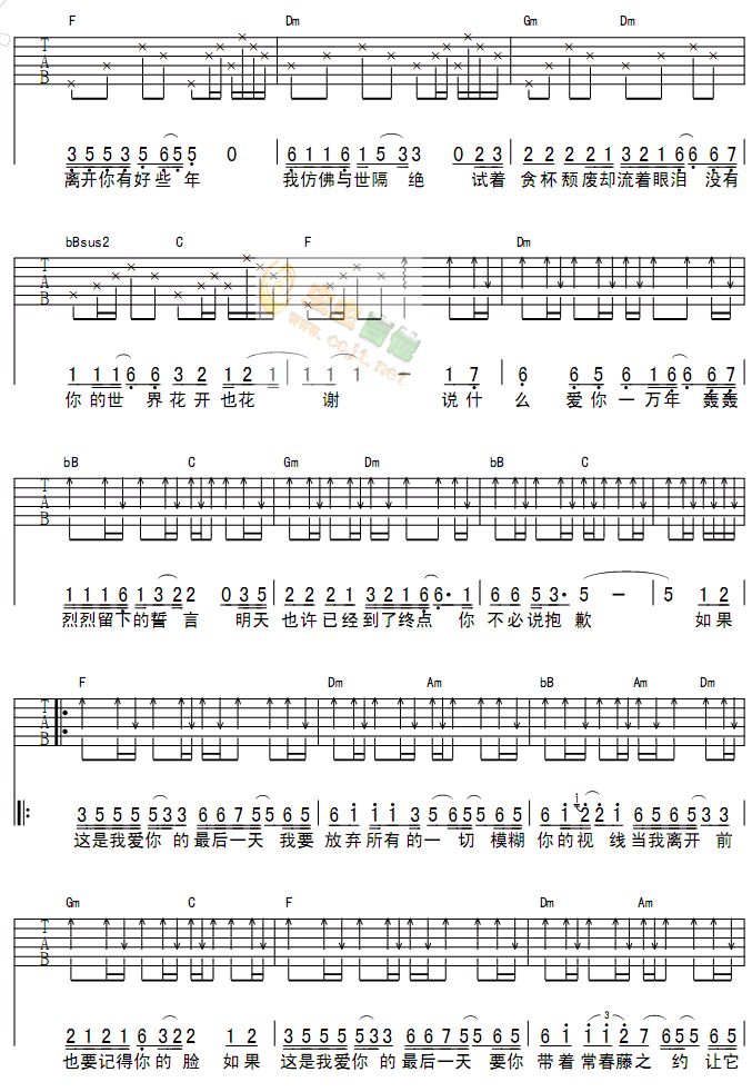 爱你的最后一天吉他谱 - 吉他弹唱谱