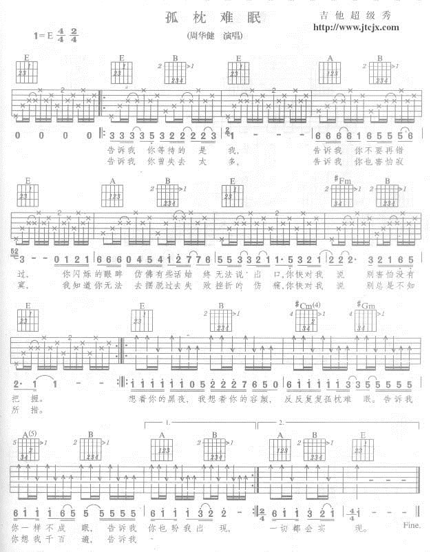 孤枕难眠吉他谱 - 吉他弹唱谱