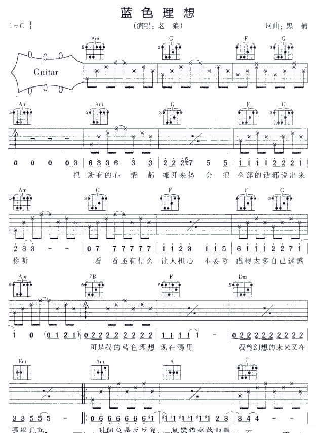 蓝色理想吉他谱 - 吉他弹唱谱