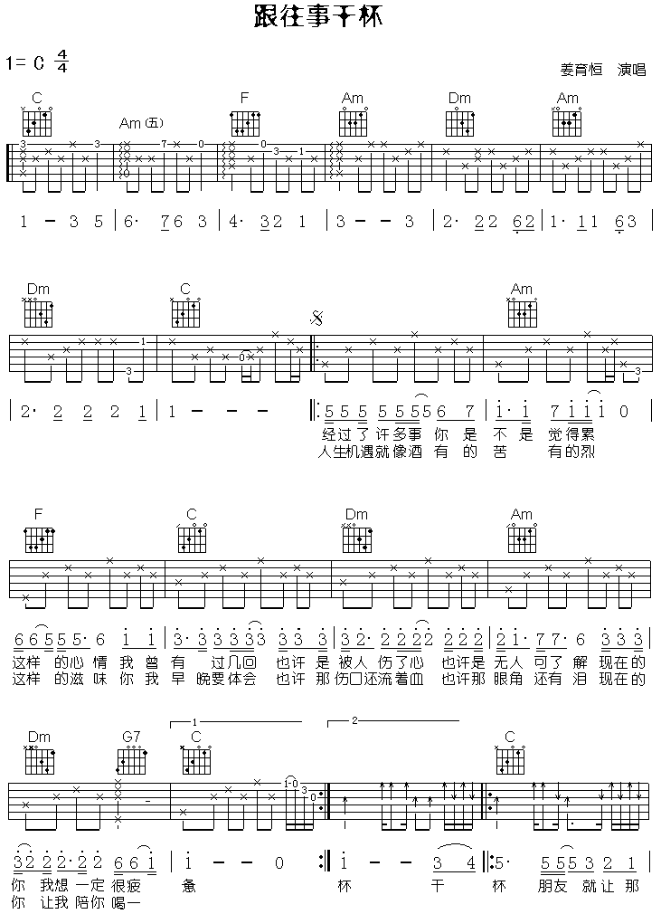 跟往事干杯吉他谱 - 吉他弹唱谱
