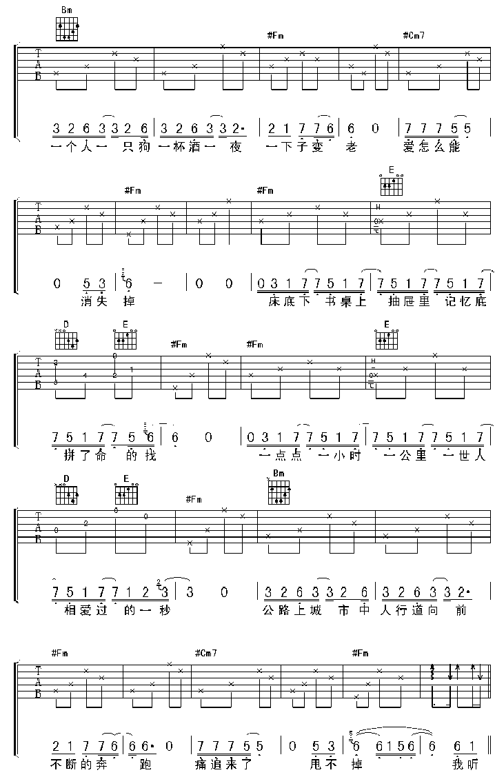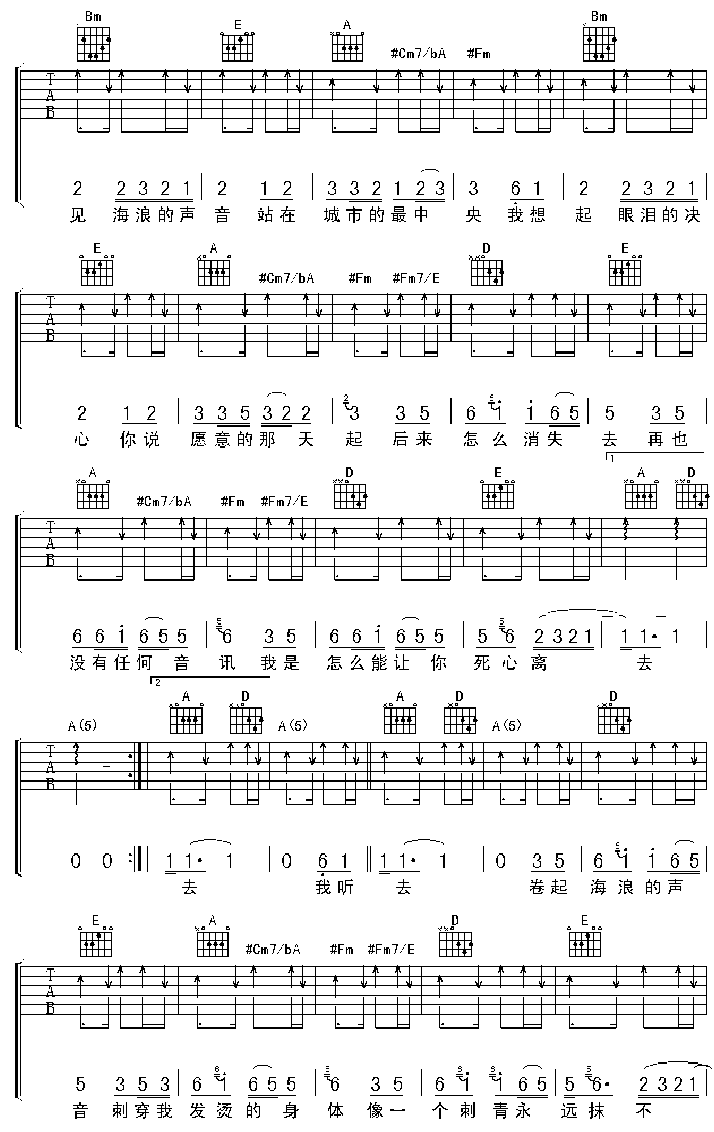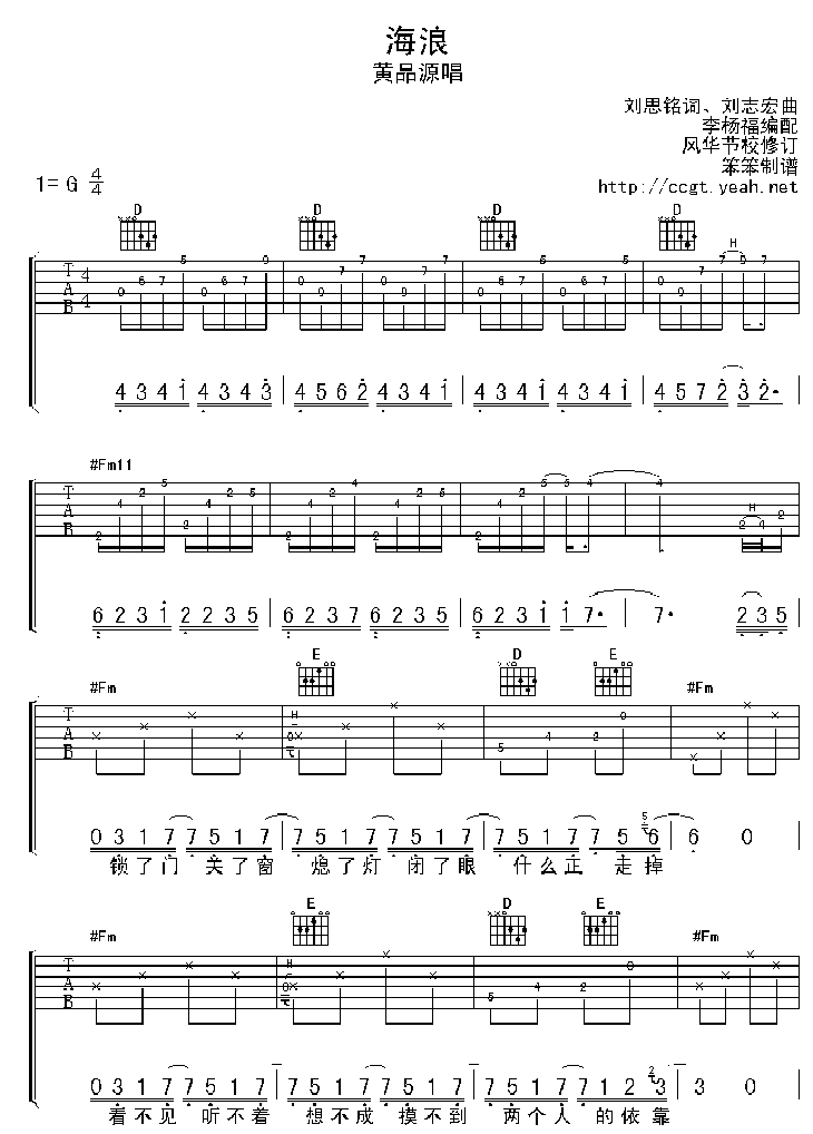 曲谱介绍: 《海浪》吉他弹唱谱,共有4张高清图谱。