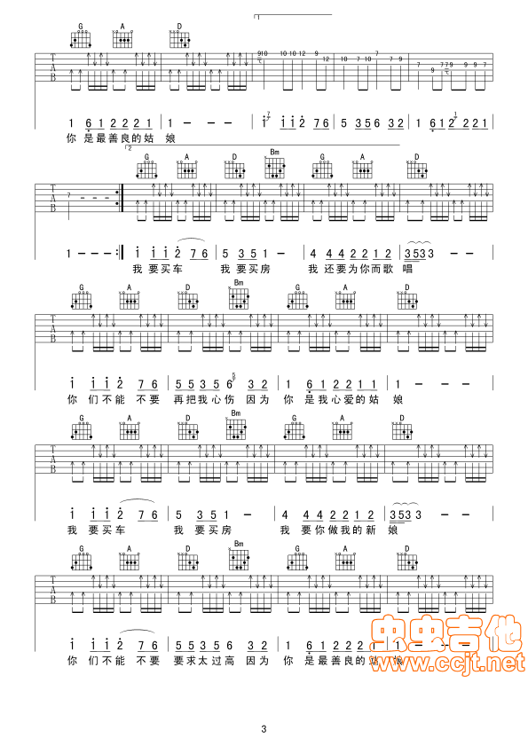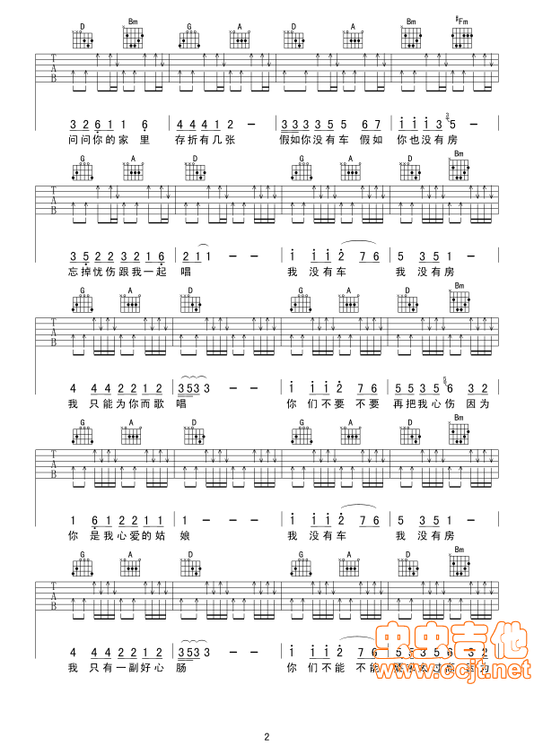 曲谱介绍: 《没有房没有车》吉他弹唱谱,共有4张高清图谱。