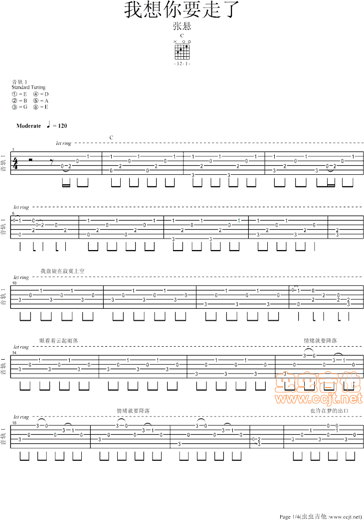 我想你要走了吉他谱 - 吉他弹唱谱