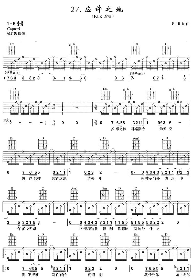 应许之地吉他谱 - 吉他弹唱谱