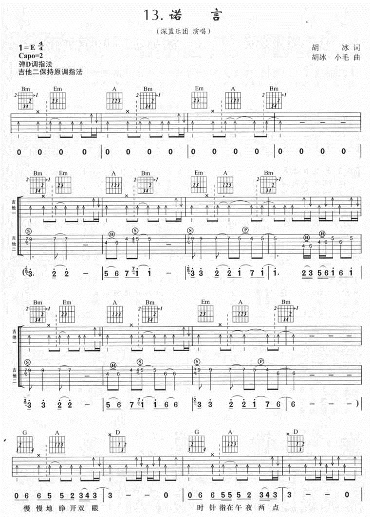 曲谱介绍: 诺言《诺言》吉他弹唱谱,共有4张高清图谱。
