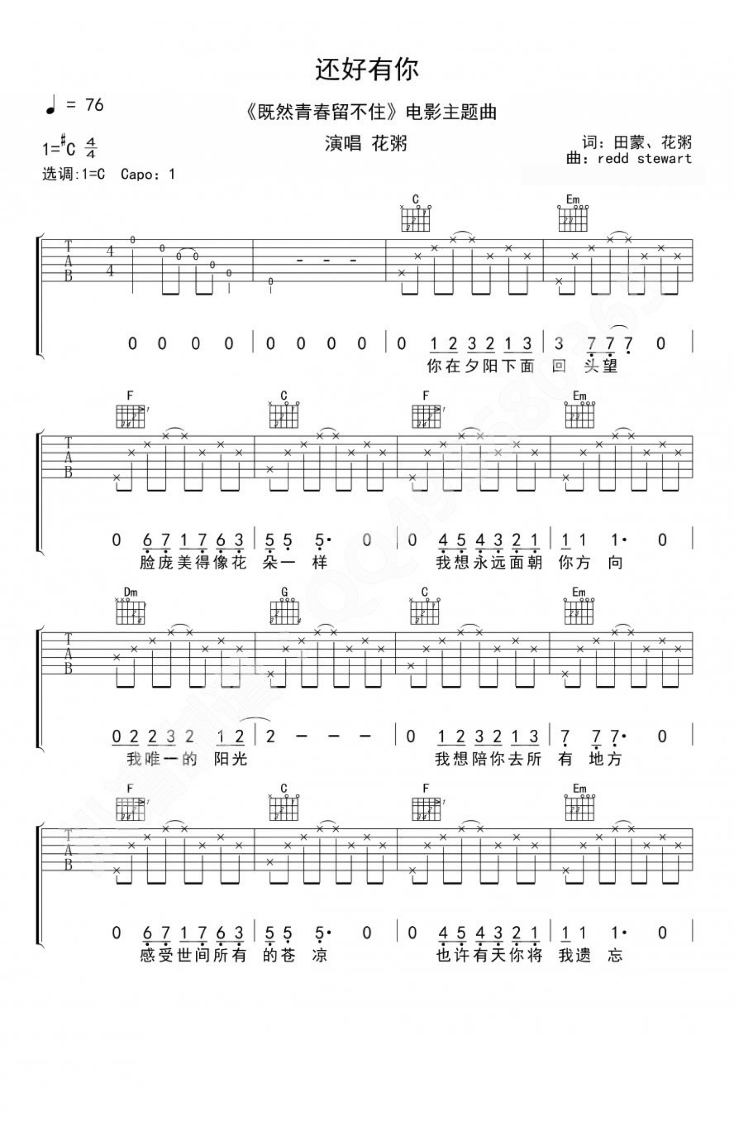 还好有你吉他谱 - 花粥 - C调吉他弹唱谱