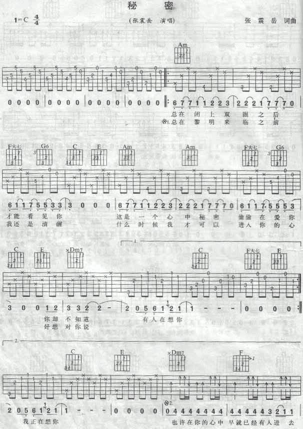 当前位置:琴谱网>吉他弹唱>秘密