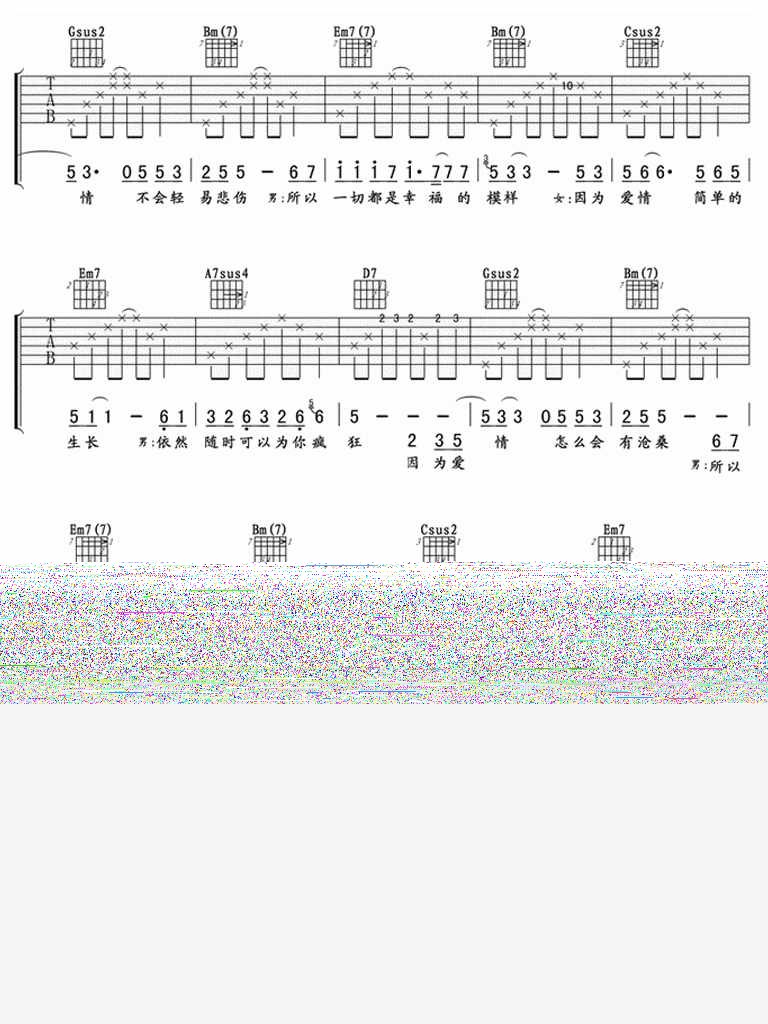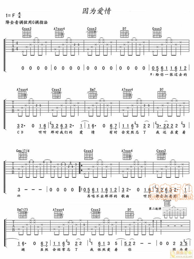 因为爱情吉他谱 - 吉他弹唱谱