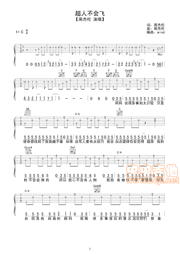 曲谱介绍: 周傑倫|《超人不會飛》吉他弹唱谱,共有4张高清图谱。