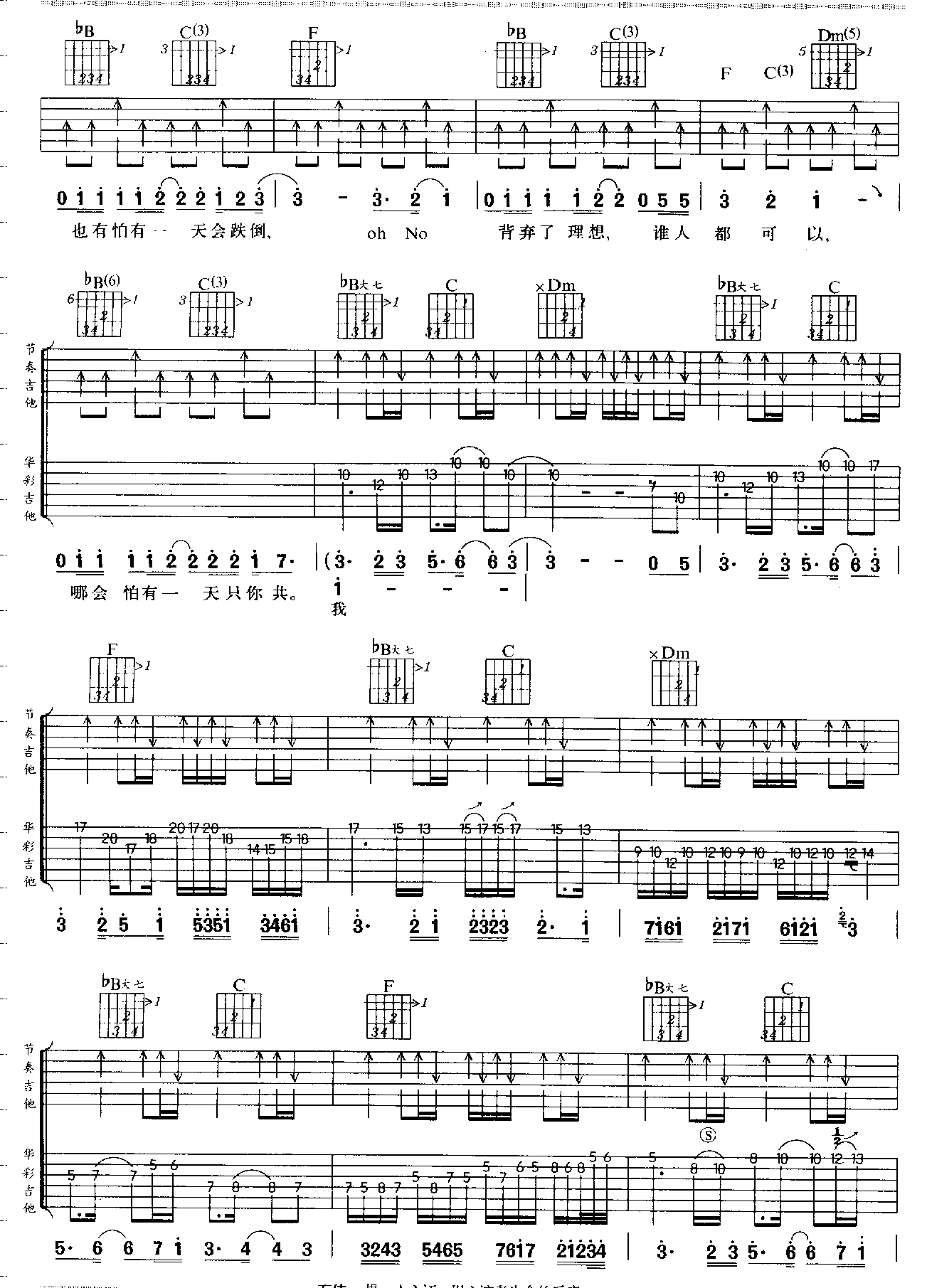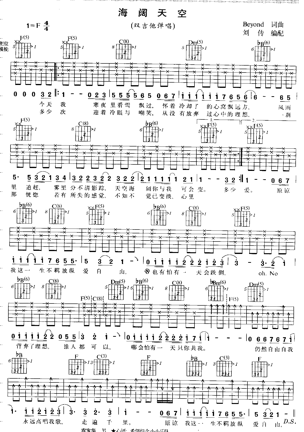 曲谱介绍: 《★海阔天空★》吉他弹唱谱,共有3张高清图谱。