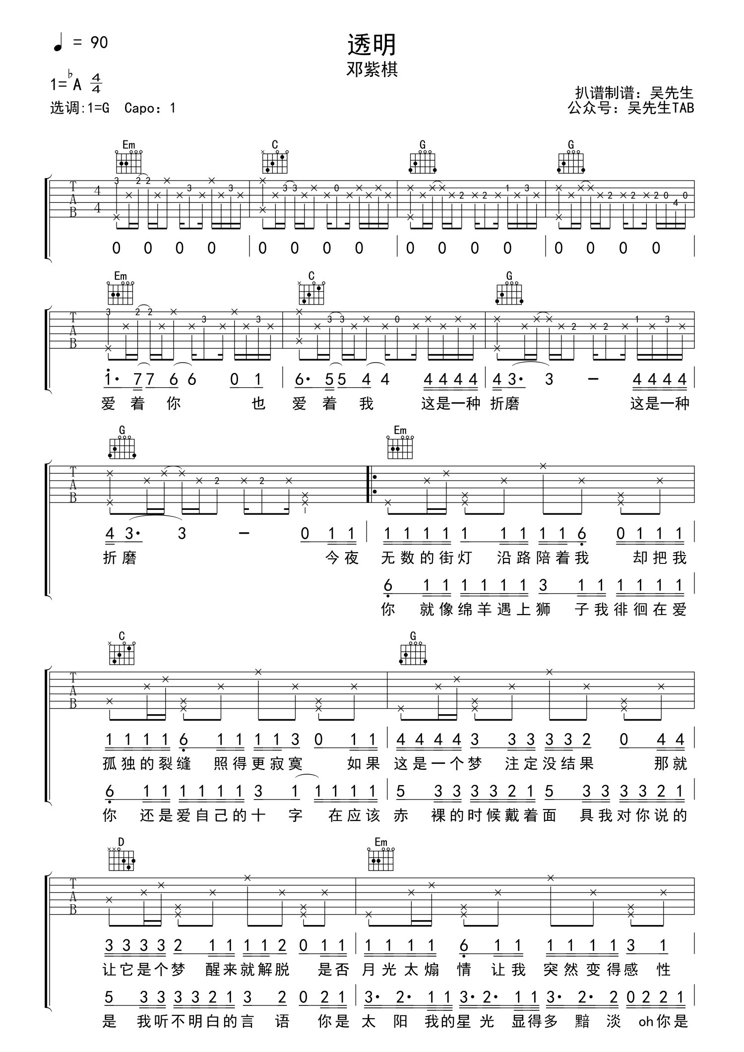 • 透明吉他谱 - 邓紫棋 - G调吉他弹唱谱第1张
