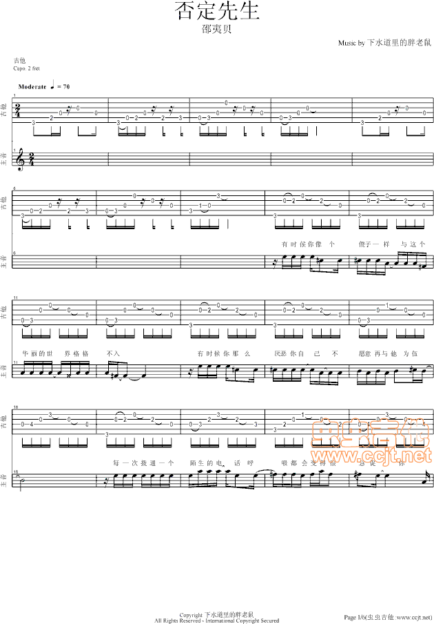 曲谱介绍: 邵夷贝《邵夷贝否定先生(第一次扒》吉他弹唱谱,共有6张高清图谱。