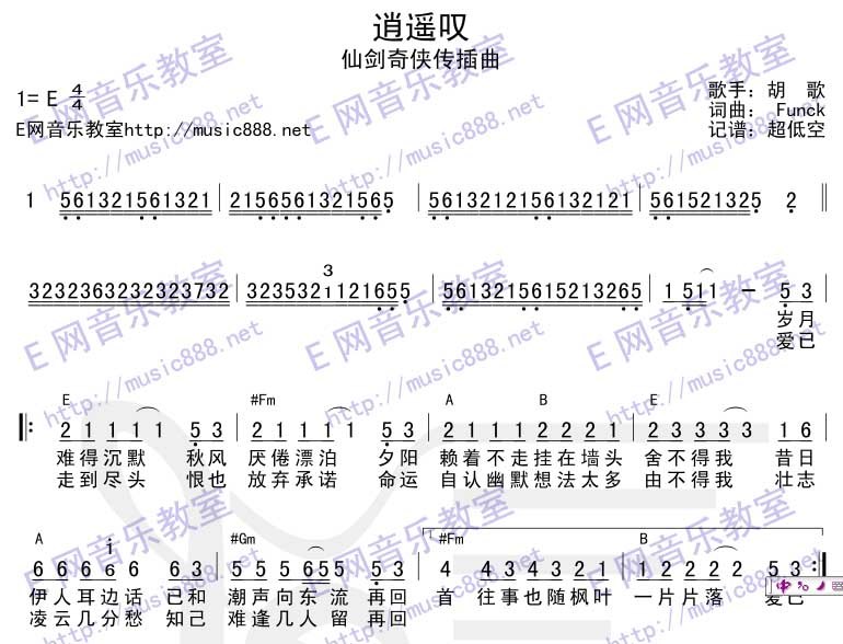 当前位置:琴谱网>吉他弹唱>逍遥叹(完美版)