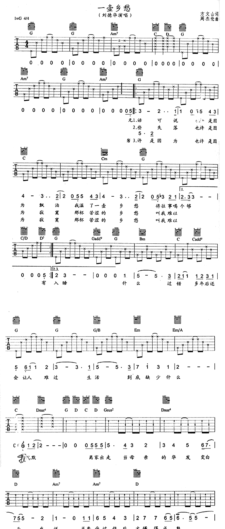 当前位置:琴谱网>吉他弹唱>一壶乡愁