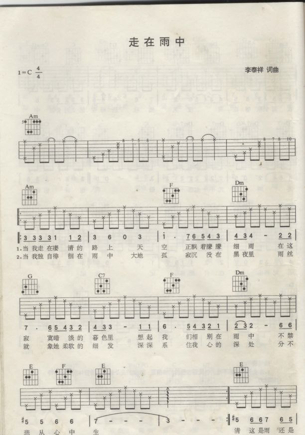 走在雨中(扫描六线吉他谱 - 吉他弹唱谱