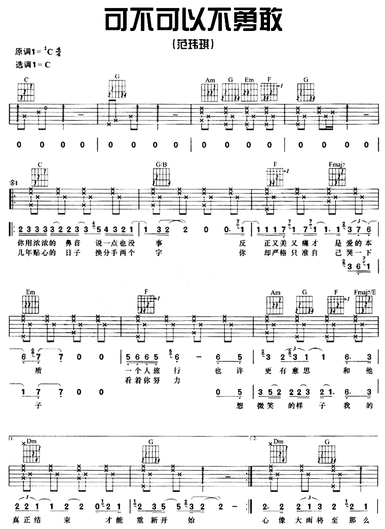 当前位置:琴谱网>吉他弹唱>可不可以不勇敢