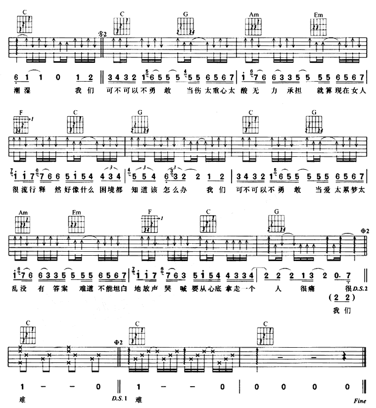 可不可以不勇敢吉他谱 - 吉他弹唱谱