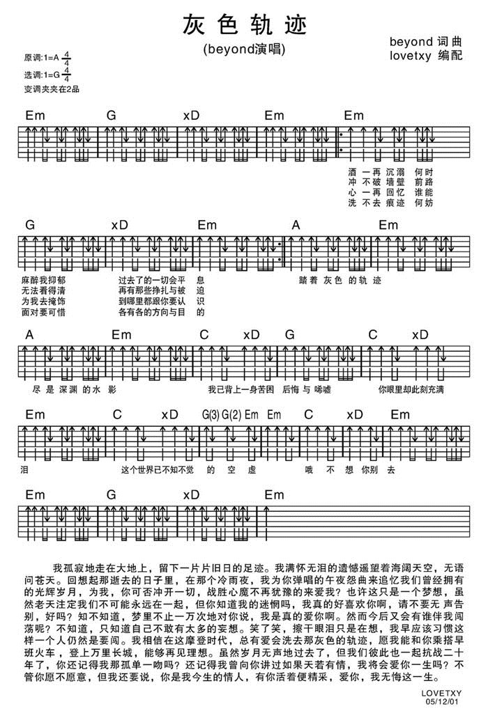 灰色轨迹beyond吉他谱 - 吉他弹唱谱