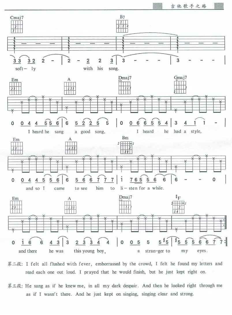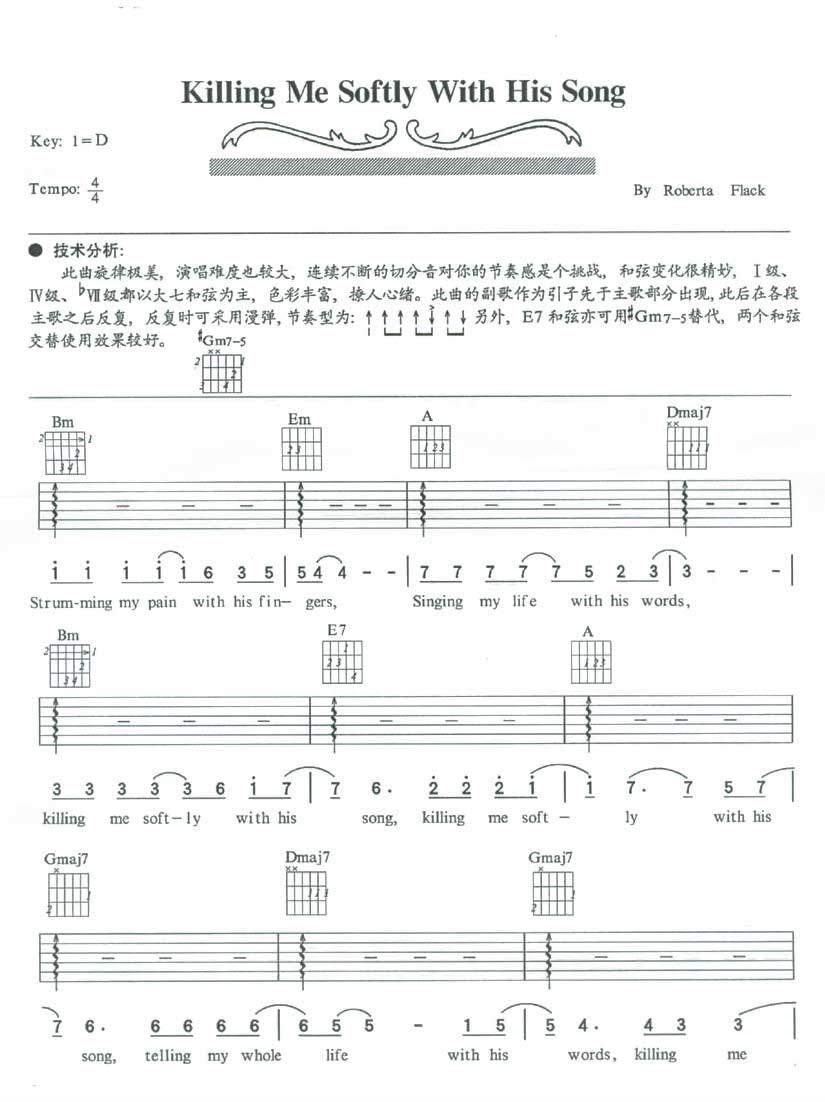 当前位置:琴谱网>吉他弹唱>kiiling Me Softly With His Song