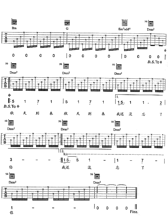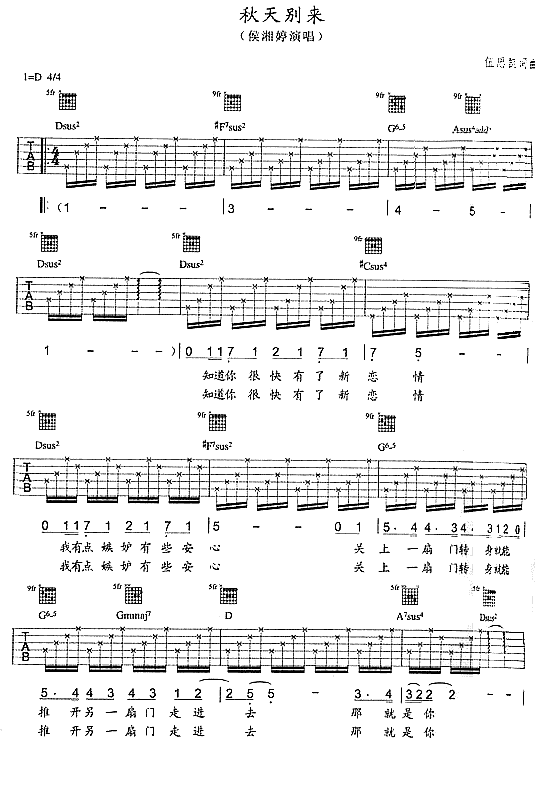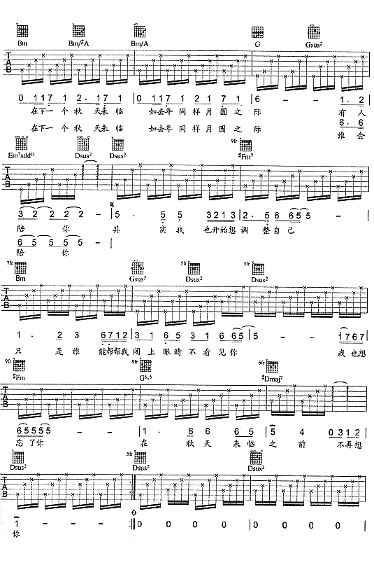 秋天别再来吉他谱 - 吉他弹唱谱