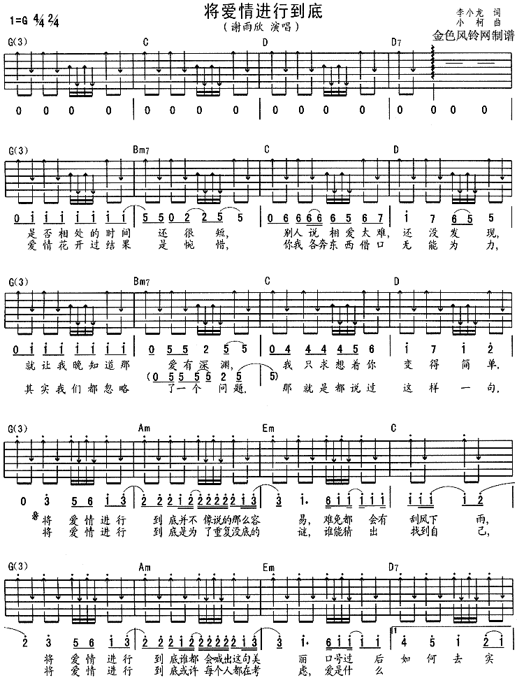 将爱情进行到底(六线)吉他谱 - 吉他弹唱谱