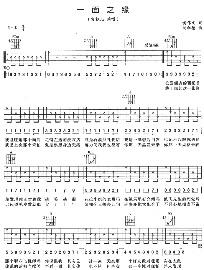 一面之缘吉他谱 - 吉他弹唱谱