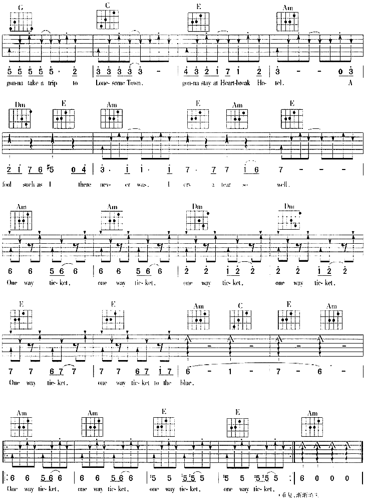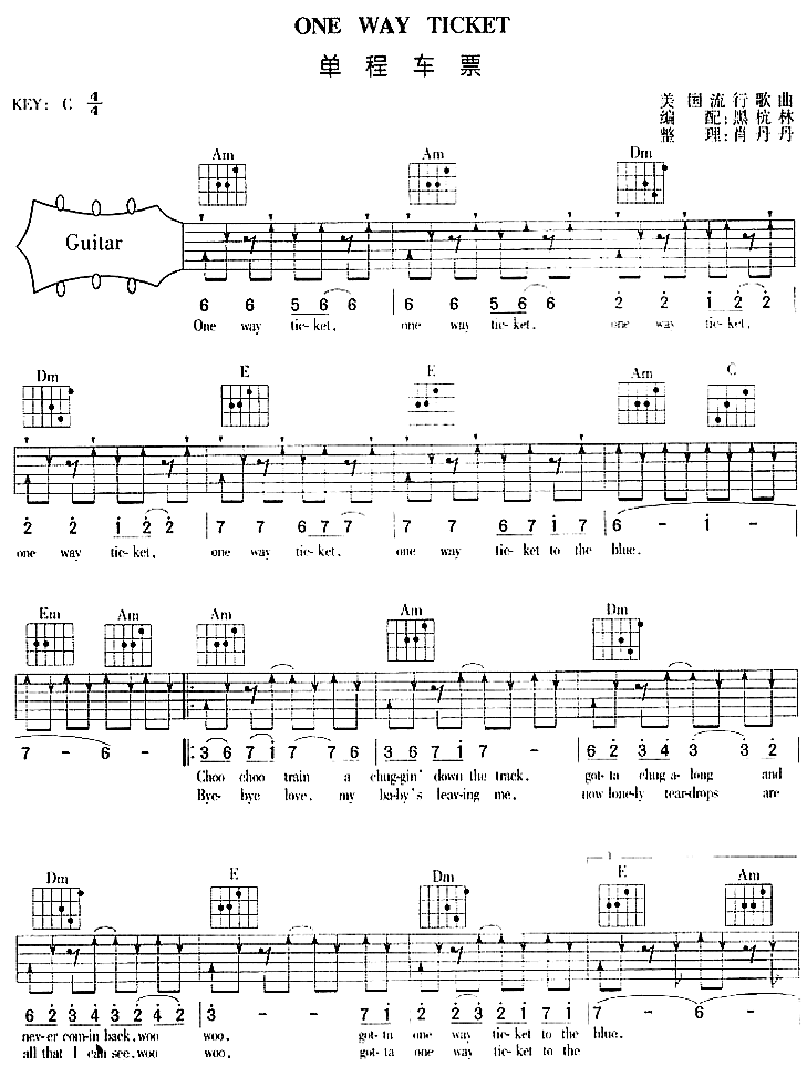 当前位置:琴谱网>吉他弹唱>One Way Ticket