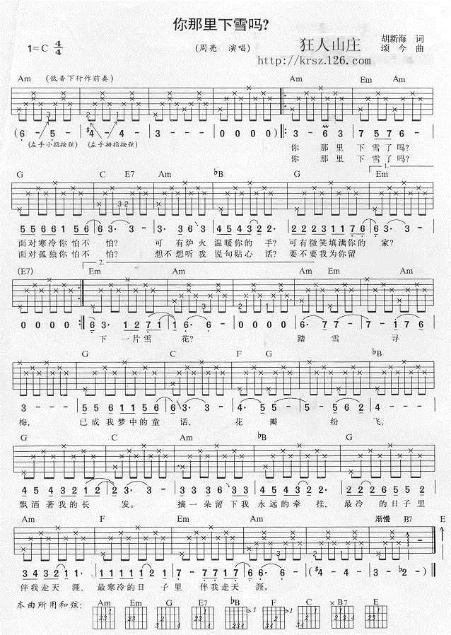 你那里下雪了吗?吉他谱 - 吉他弹唱谱