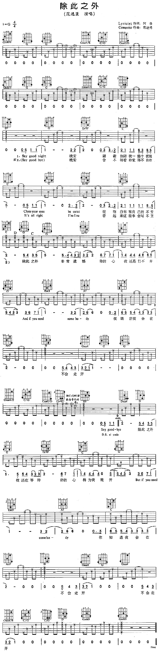 当前位置:琴谱网>吉他弹唱>除此之外