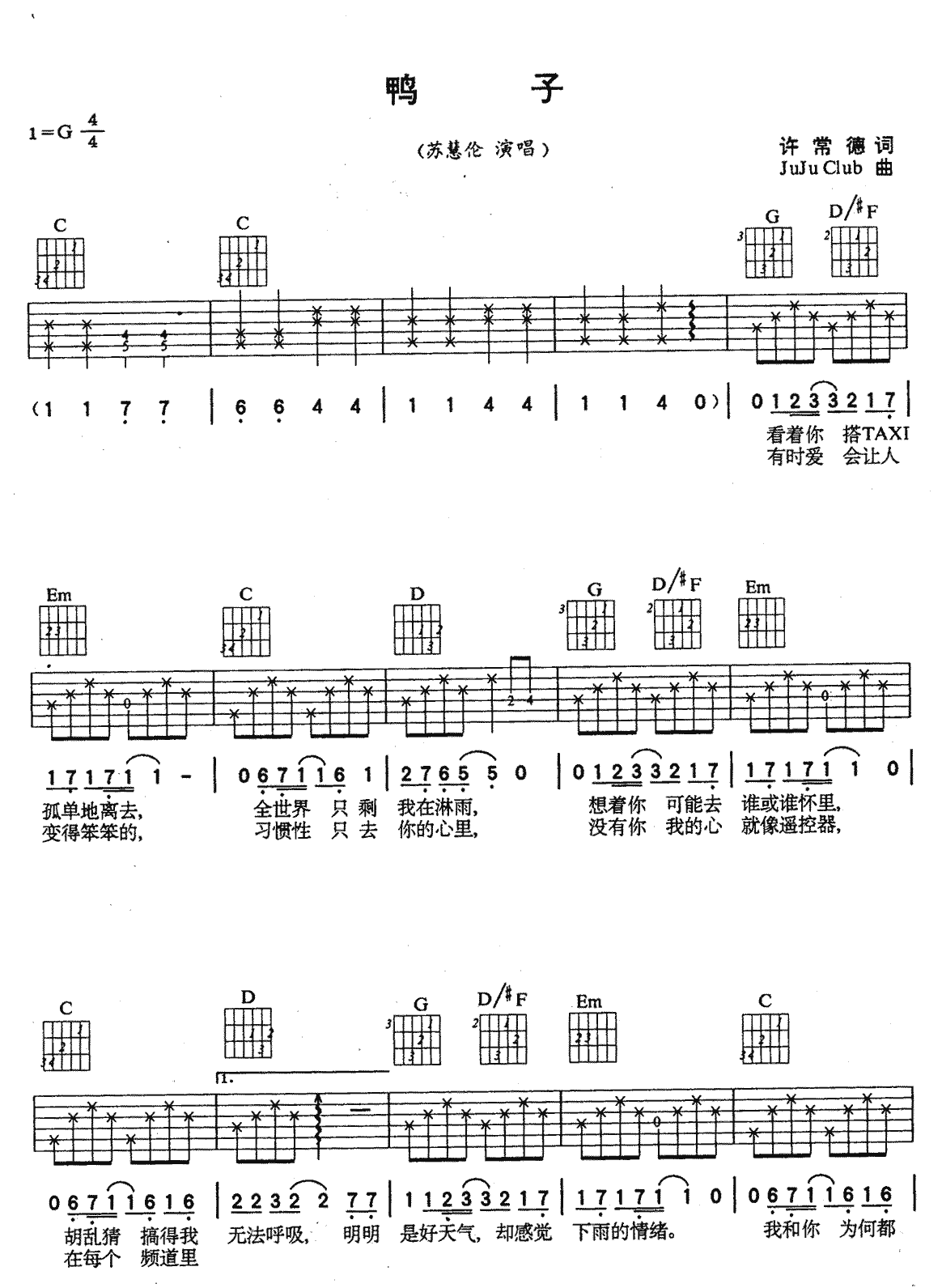 鸭子吉他谱 - 吉他弹唱谱