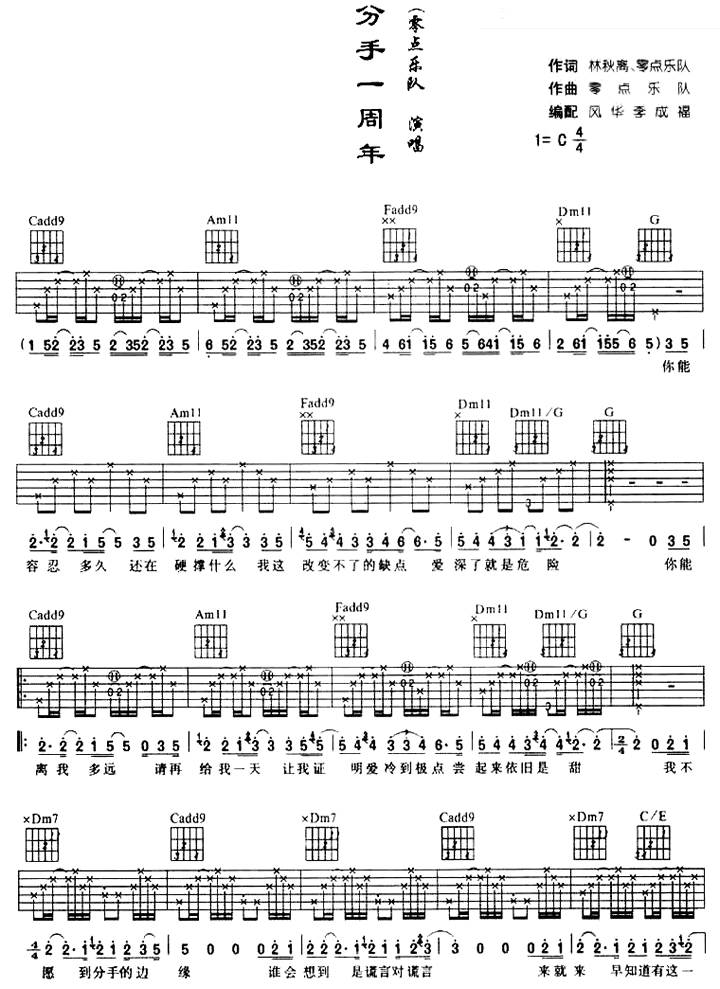 分手一周年吉他谱 - 吉他弹唱谱