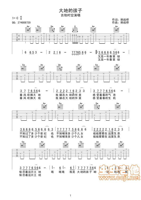 大地的孩子(吉他谱 - 吉他弹唱谱